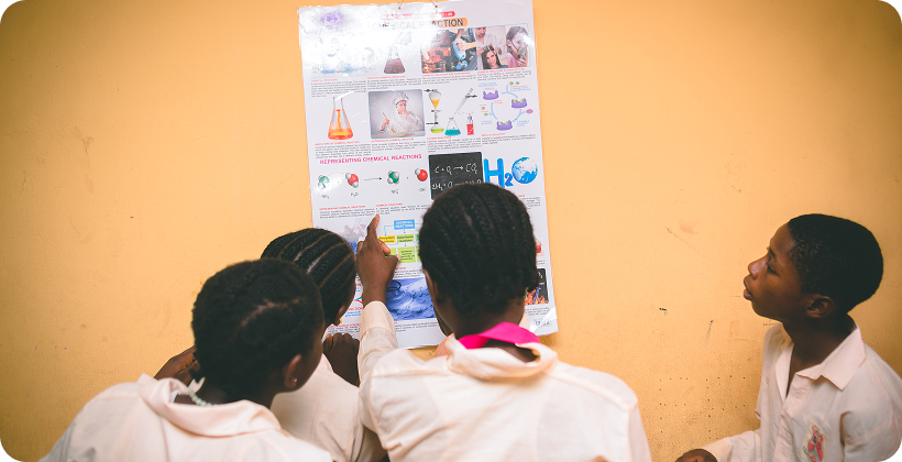 The charts were placed in the SS1 Science class to support subject instruction at that level. A total of 65 students in the SS1 Science class will benefit directly from the use of these visual learning aids during classroom lessons.